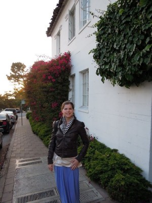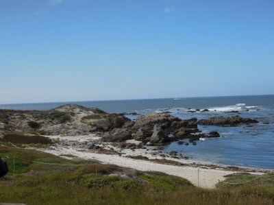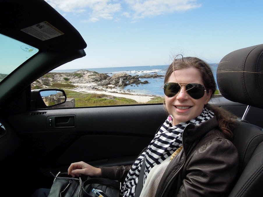 Next up was driving through the area to sight see and do the 17 mile drive. You have to pay a few dollars to enter the 17 mile drive, but it’s a fun experience. I was disappointed that a lot of the rich people had fences blocking their property so I couldn’t ooh and ahhh at the mansions I expected to see, but there was some nice scenery to check out. It’s fun because most of the people on the road are doing the same thing as you = being a tourist, so you don’t have to worry about being tailgated or anything. 🙂 I was trying to hide my eyeglasses, but you can still see them in my hand!