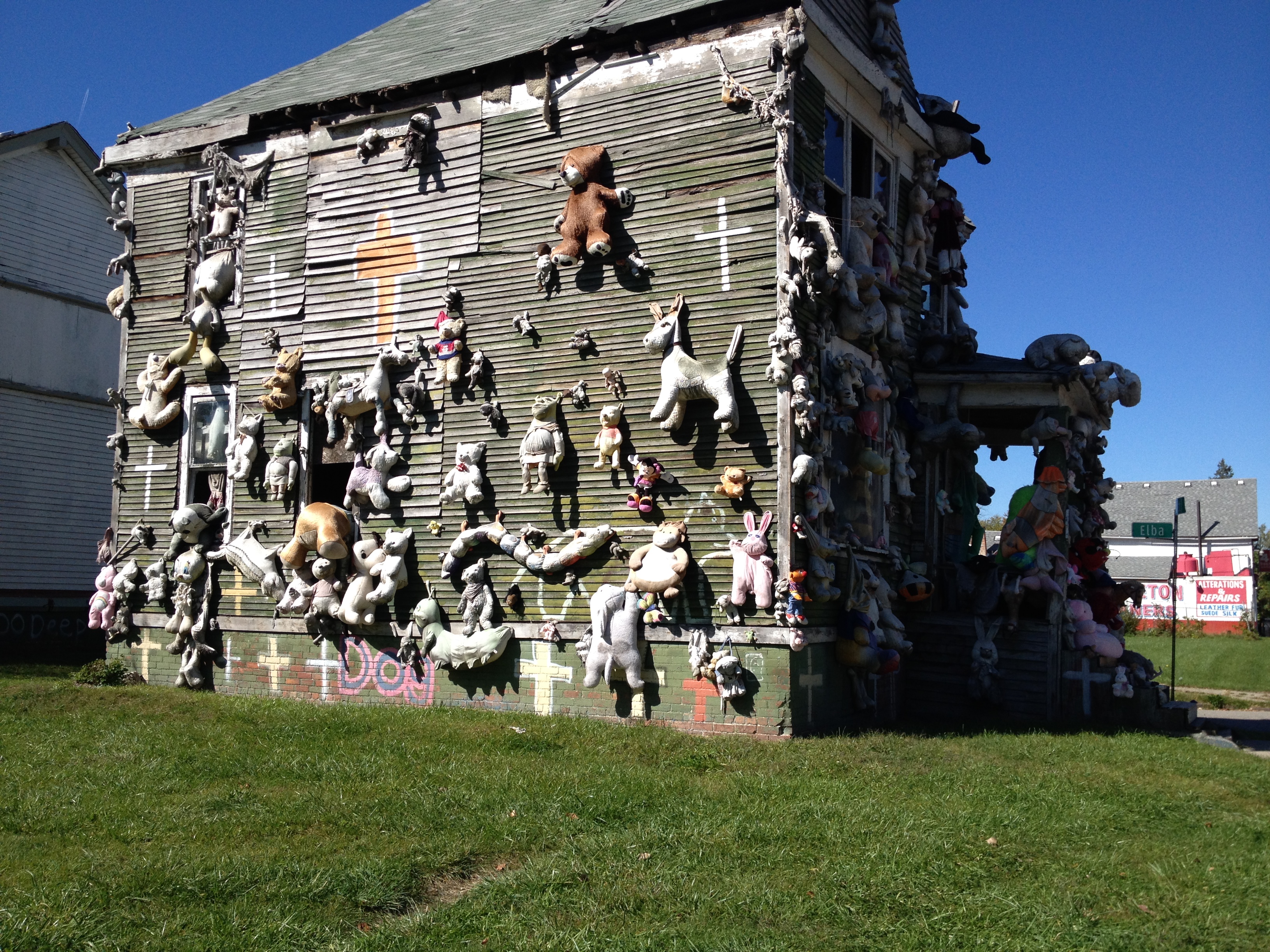 The next day we got to explore some of Detroit. We went to Green Dot Stables for lunch. I found this place through internet stalking where Anthony Bourdain ate while he was in Detroit filming a show. The sliders, kale salad, fries, beers, and service were all awesome. Our waiter was super friendly and helpful with suggestions of places to check out as tourists with a few hours to spare before a wedding. We ended up viewing The Heidelberg Project which was a bittersweet experience.