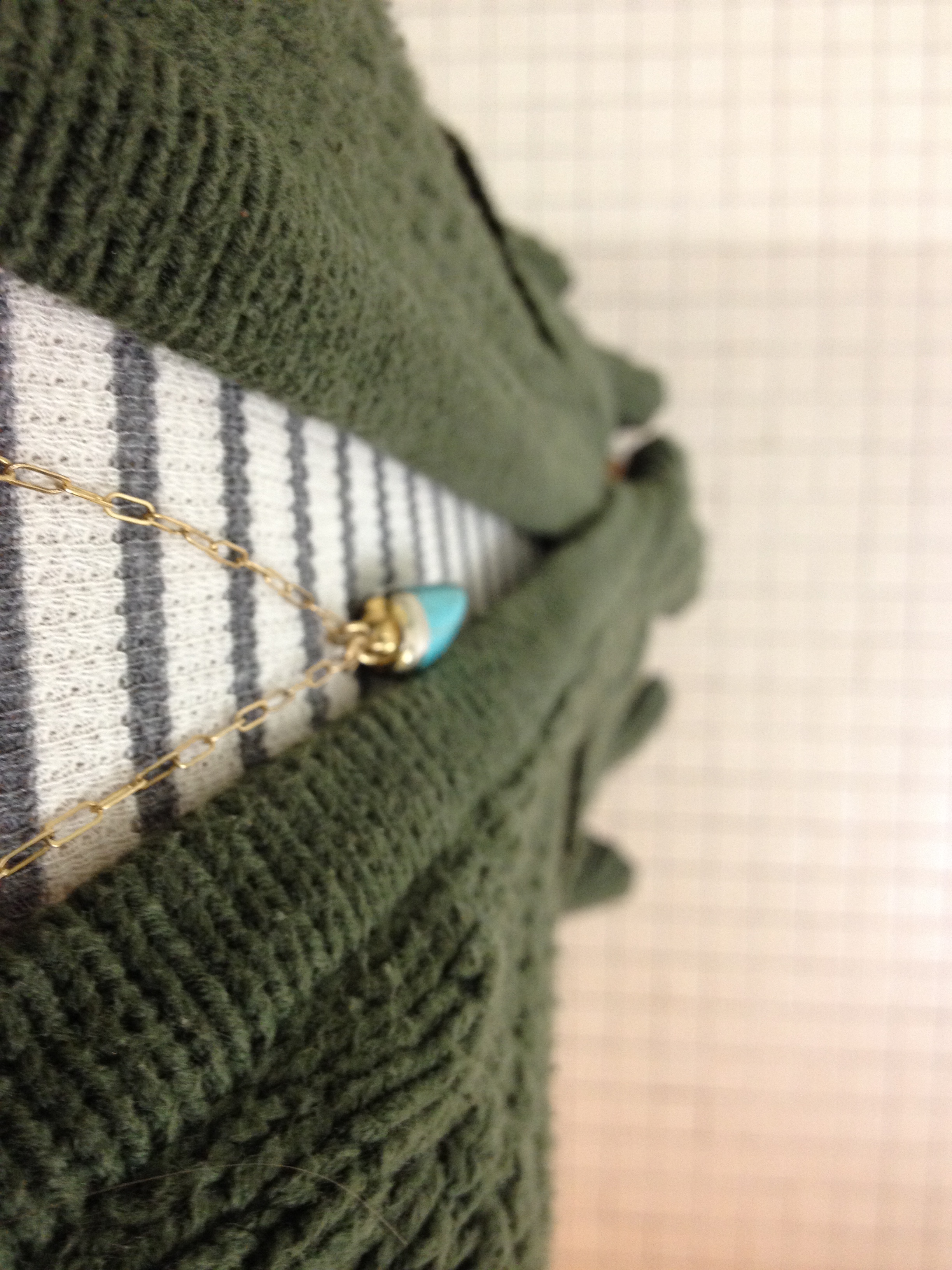 photo 1 (1)These are two of my favorite necklaces. I spotted this K necklace a few years ago on ABC Family’s Pretty Little Liars and purchased one for myself.  The long turquoise necklace was gifted to me for my birthday a few years ago by my parents. I bought the sweater from Anthropologie a few years ago. You can find a similar one here. It’s one of my favorite warm, go-to casual winter sweaters.