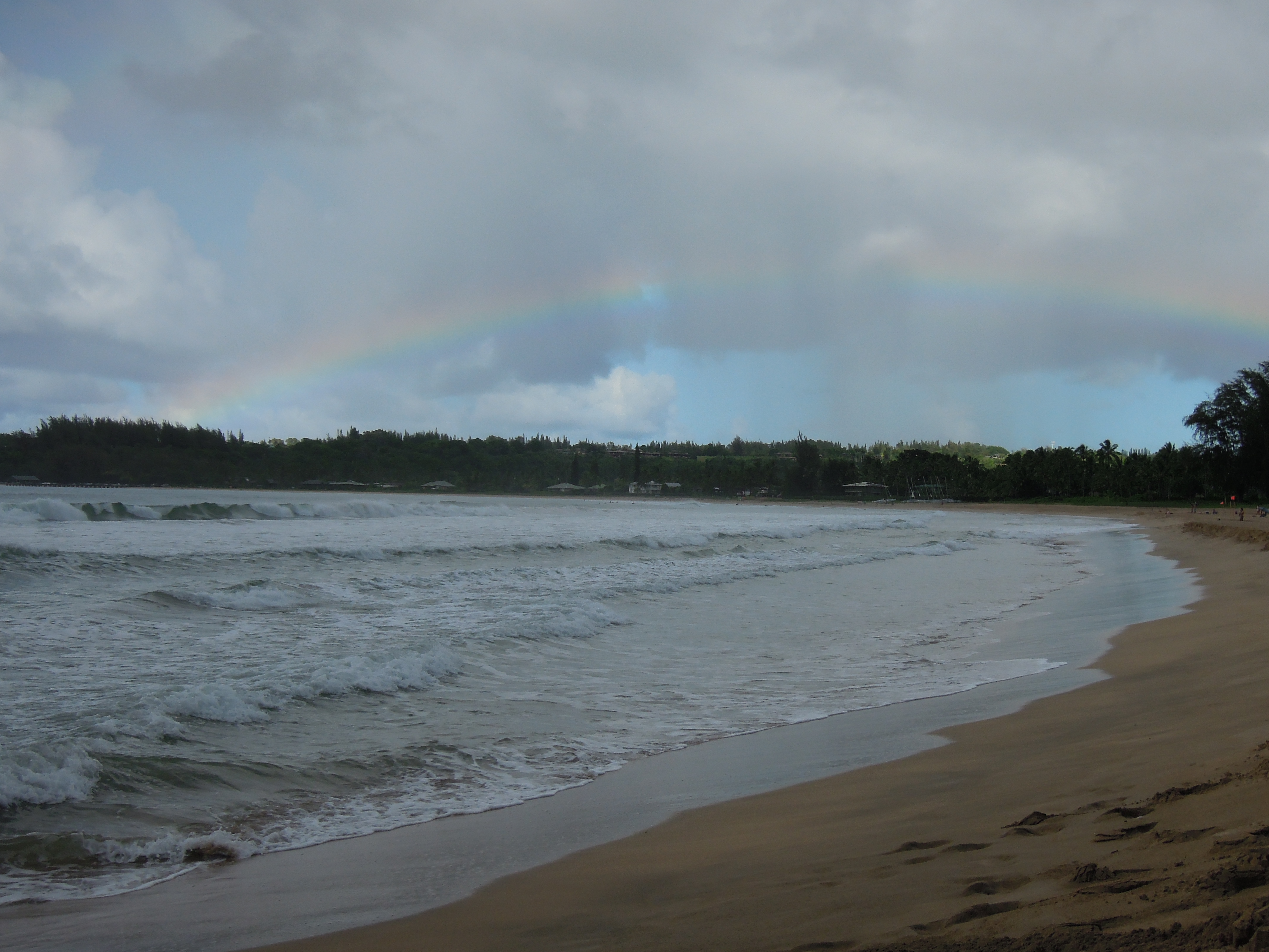 After lunch here, we went to the beautiful Hanalei Beach where you can view the NaPali Coast, rain showers, surfers, and boogie boarders. This beach is awesome and Kraig had a blast body surfing here. It was a little cloudy/rainy while we were there and this picture does not do it justice.