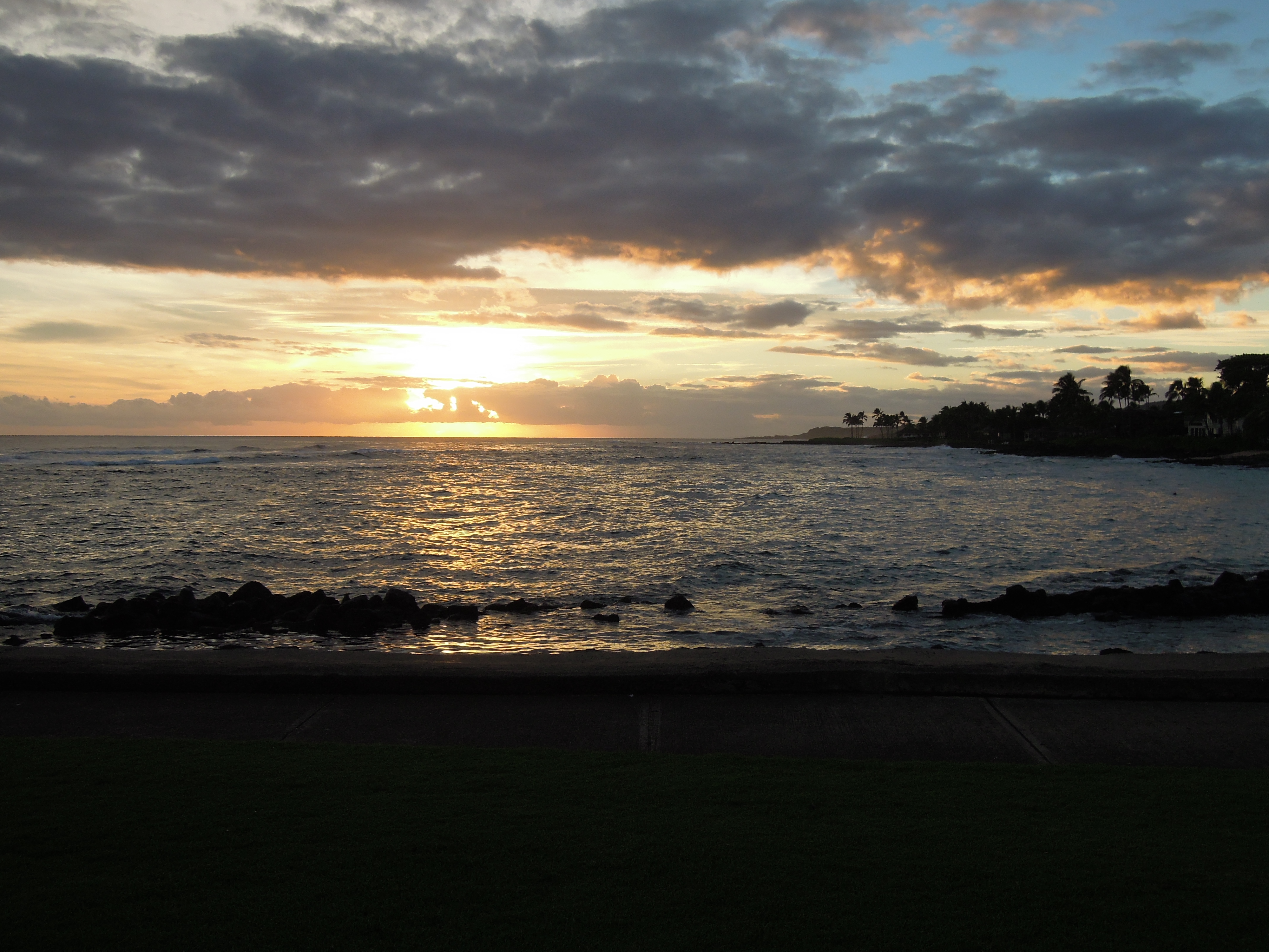 We showered up at the beach’s public restrooms, changed and then went for drinks at The St. Regis Princeville to watch the sunset and see what the property is like. The hotel was gorgeous with amazing views, but I have to say that that the service was lacking. Our waiter forgot about us and a table sitting next to us and their valet service was the slowest I had during our entire honeymoon. This is not something I would expect from a top star resort and it made me feel relieved that I wasn’t spending the big bucks to stay there. Regardless, the property is still gorgeous, so I snapped up pictures.