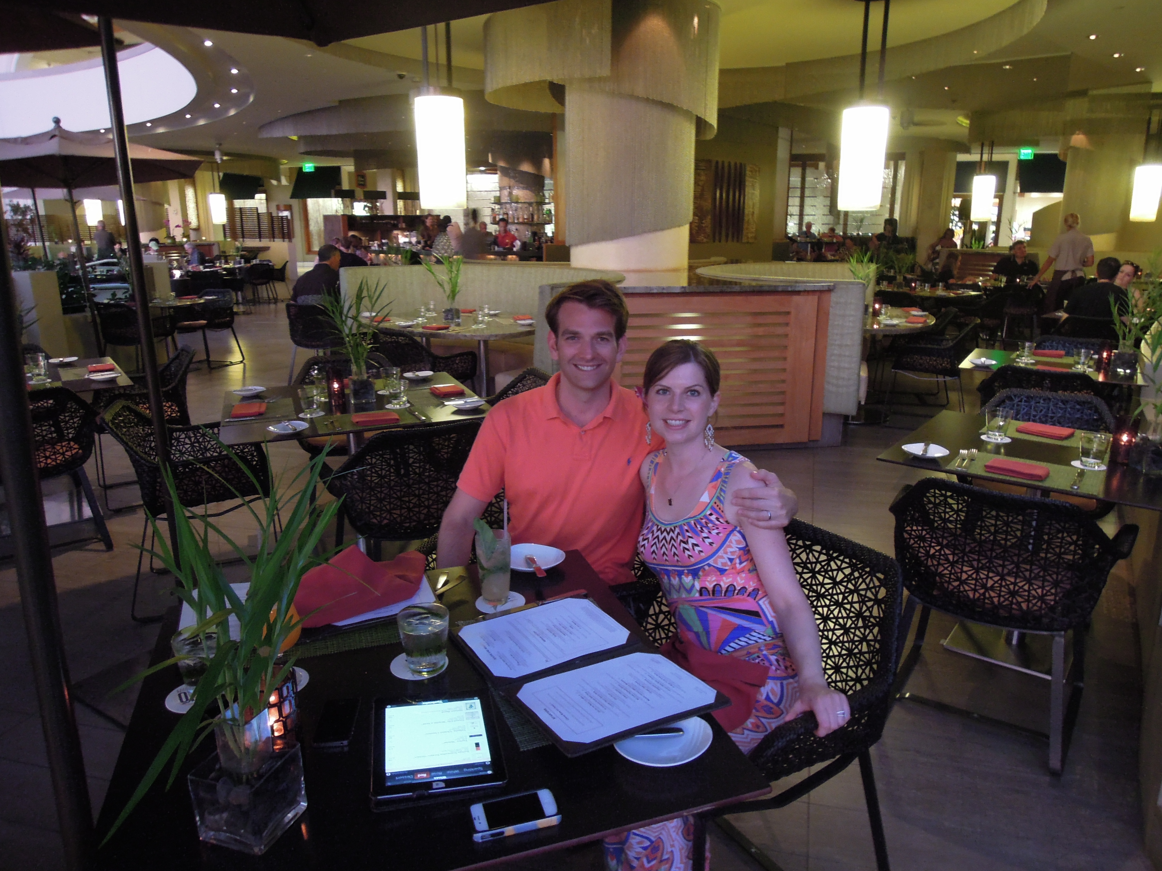 There was a lot of construction along the way and we actually were stopped in one place for almost an hour, but when you’re in paradise that’s just a small set back. We made it to Hotel Travaasa before sunset for check in. We enjoyed some bubbly outside our cottage before dinner at the hotel restaurant with live entertainment by one man.
