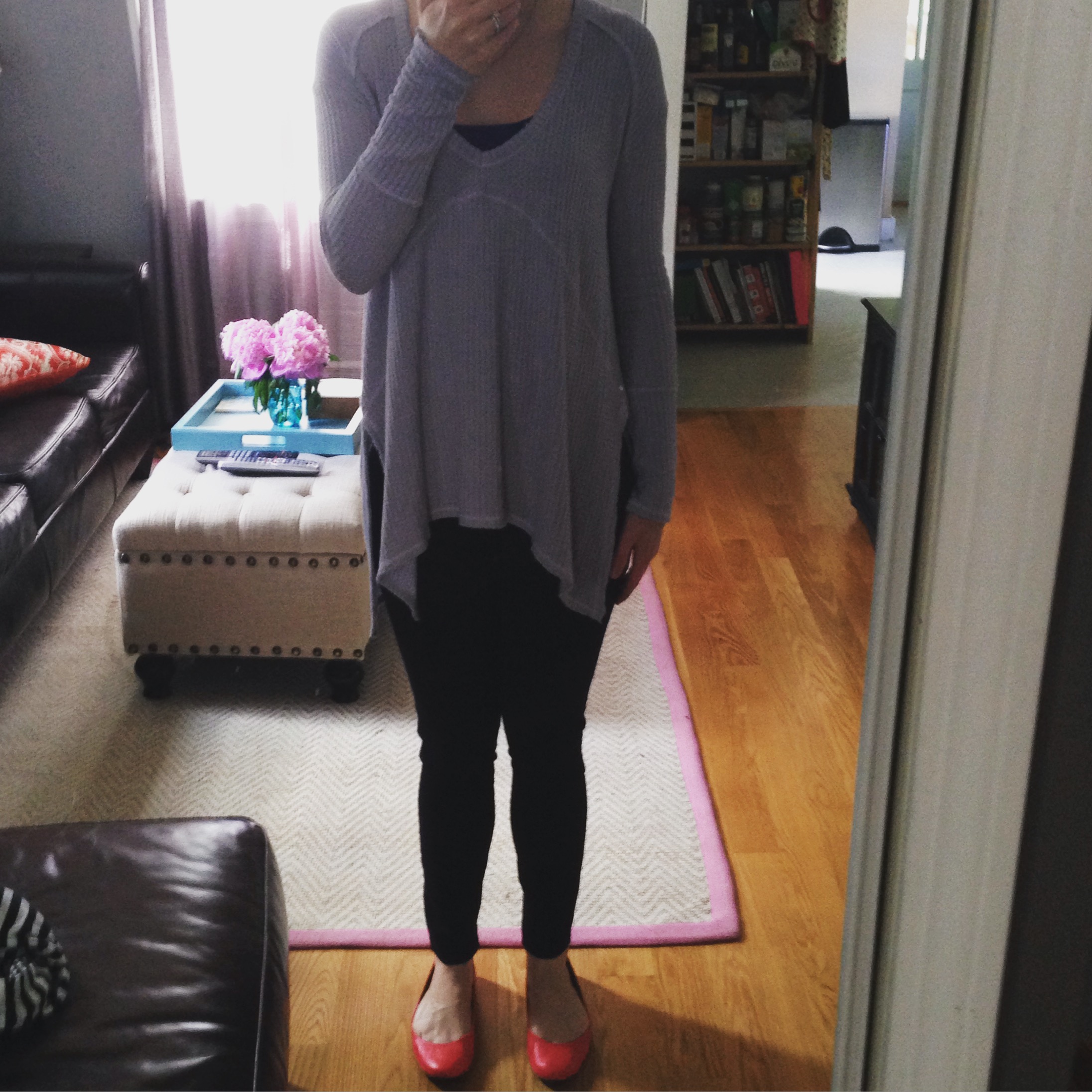 It’s May 13th and there’s just enough of a chill in the Boston air for me to wear my new thermal shirt. I purchased this recently for an upcoming trip to Iceland and love how soft and swingy it is. It drapes nicely to pair with leggings or skinny jeans and can easily hide a food baby if you’d like. It’s the perfect shirt to wear when I’ll probably be doing a lot of eating and drinking on vacation soon.