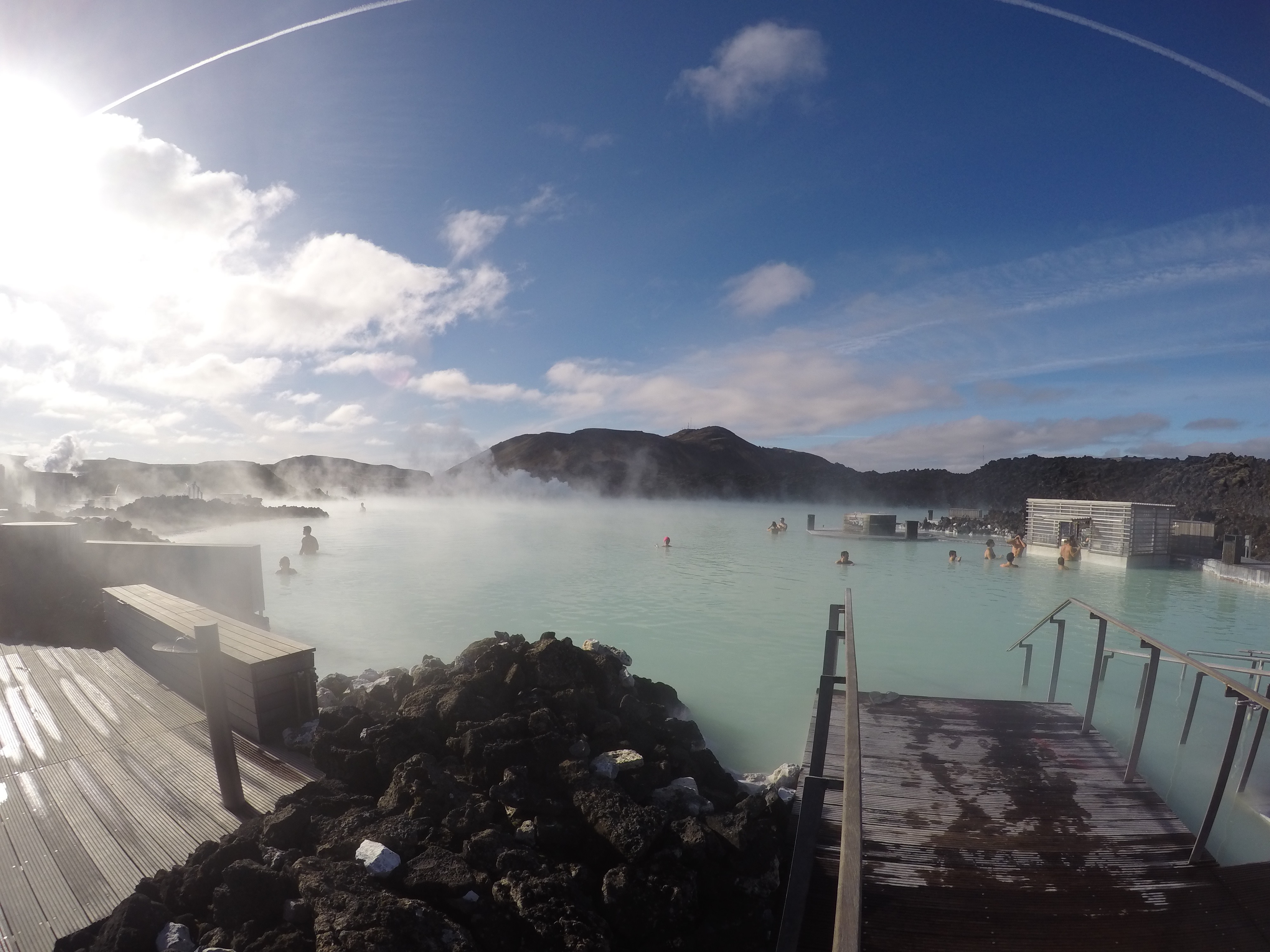 We grabbed breakfast from Joe Juice at the airport which was surprisingly good airport food. I have to say this is probably the healthiest and freshest airport food I’ve had in my life. They have yummy smoothies with fresh fruit or greens. After breakfast, we picked up our car rental and began our short drive to The Blue Lagoon hot springs. These hot springs are man made and have a party atmosphere to them. Even though we were there around 8AM in the morning, other people quickly arrived with the same plan as us to drop by after their flight landed.