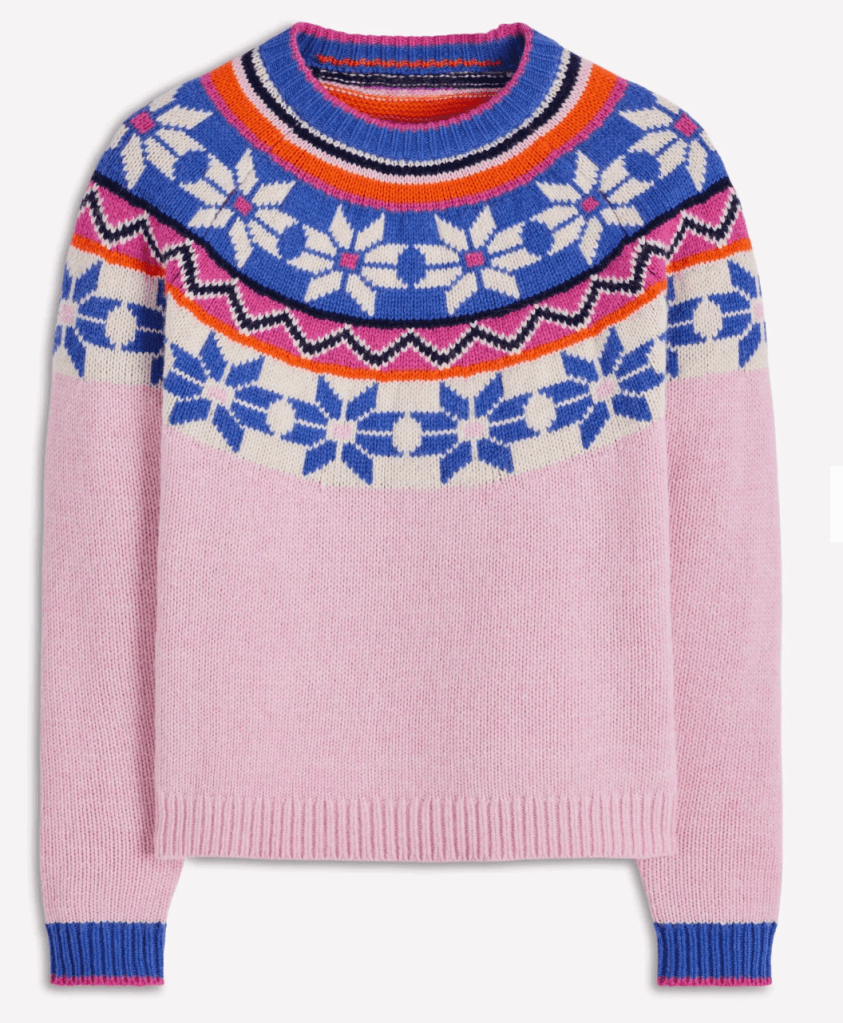 How cute is this pink Boden sweater? It feminine, wintery, and super cute! It would like great paired with a pair of jeans or cozy corduroys and your favorite footwear! I always find my UGGs so cozy in the wintertime, but think these Margaux boots are super nice too!